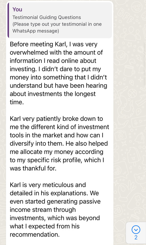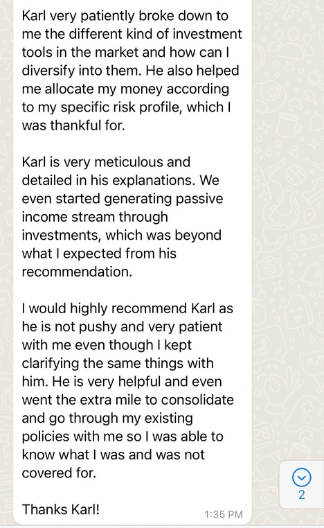 A: To be honest, I cannot answer this question in any manner without being bias. But ask any of my clients and they will tell you the great experience they had with me. Ultimately, I believe everyone has the freedom of choice, and it's entirely up to you to decide if I'm a right fit as your advisor, and if my services suit your needs.